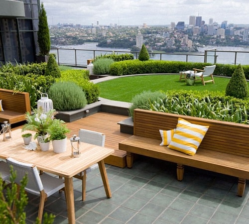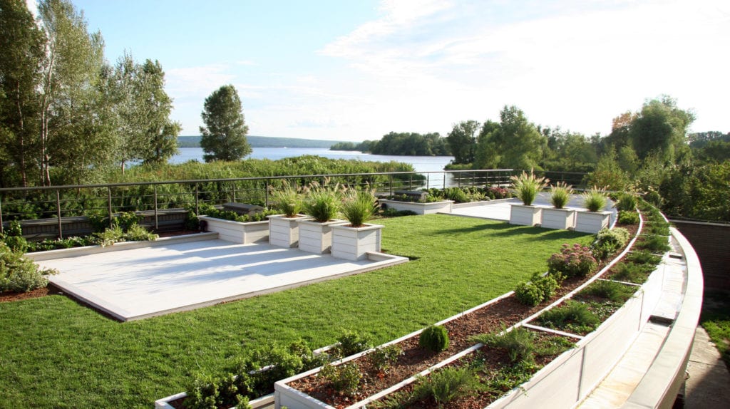Интенсивное озеленение – это создание настоящего сада на крыше. Это многофункциональные зоны, на которые можно выходить, где можно играть, встречаться с друзьями, наслаждаться отдыхом в окружении зелени.