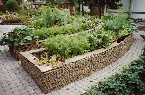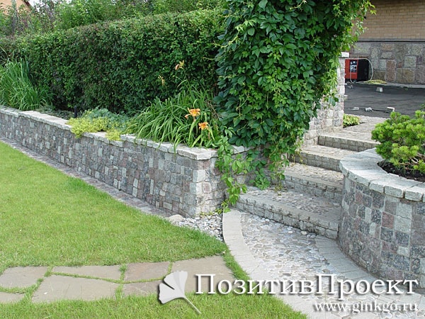 Укрепительные подпорные стенки также широко применяются при террасировании естественных склонов с целью увеличения полезной площади для размещения элементов озеленения и благоустройства.
